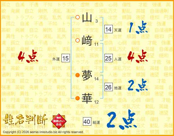 山﨑夢華さんの人運は25画の4点!