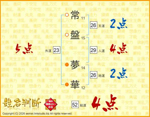 常盤夢華さんの総運は52画の4点!