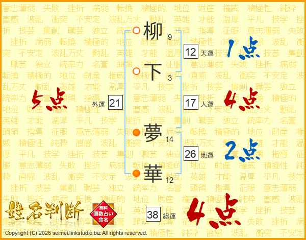 柳下夢華さんの総運は38画の4点!