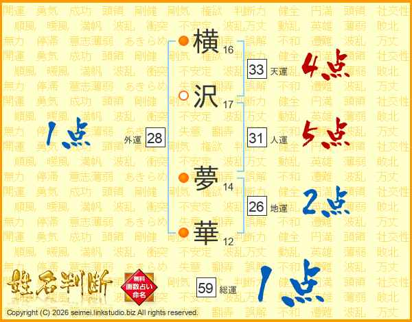 横沢夢華さんの総運は59画の1点!