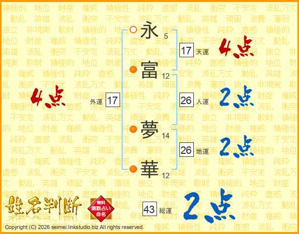 永(5画)富(12画) 夢(14画)華(12画)