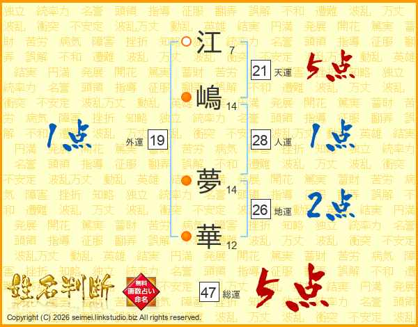 江嶋夢華さんの総運は47画の5点!