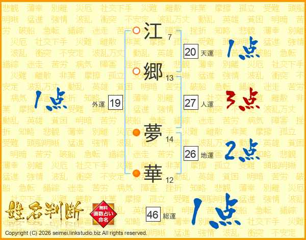 江郷夢華さんの総運は46画の1点!