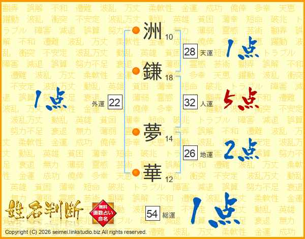 洲鎌夢華さんの総運は54画の1点!