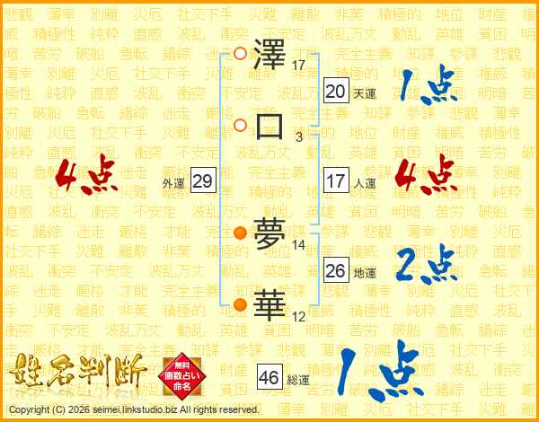 澤口夢華さんの地運は26画の2点!