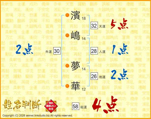 濱(18画)嶋(14画) 夢(14画)華(12画)