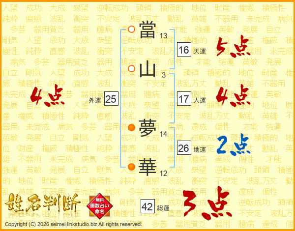 當山夢華さんの地運は26画の2点!