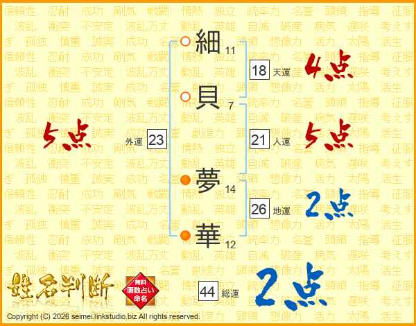 細貝夢華さんの総運は44画の2点!