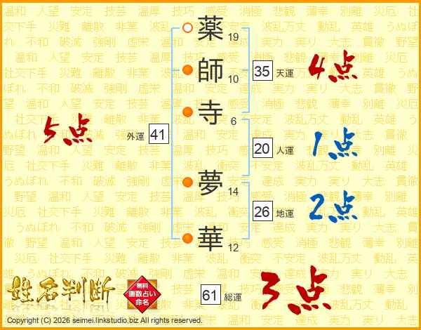 薬師寺夢華さんの外運は41画の5点!