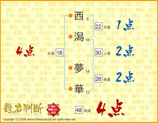 西潟夢華さんの総運は48画の4点!