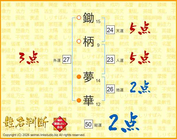 鋤柄夢華さんの総運は50画の2点!