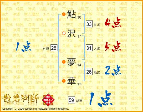 鮎(16画)沢(17画) 夢(14画)華(12画)