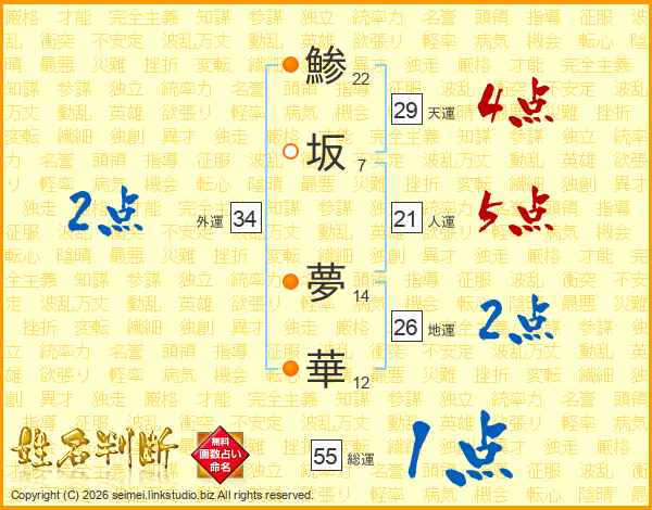 鯵坂夢華さんの天運は29画の4点!