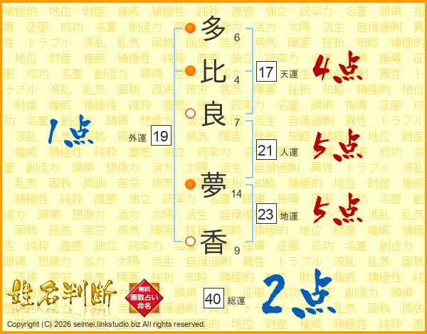 多(6画)比(4画)良(7画) 夢(14画)香(9画)