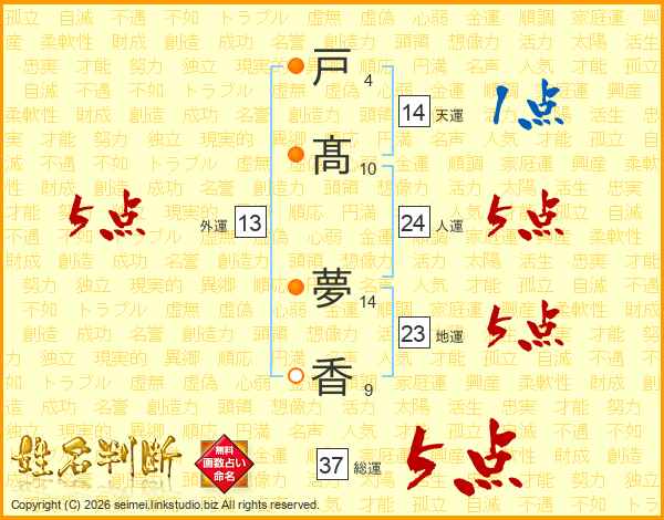 戸(4画)髙(10画) 夢(14画)香(9画)