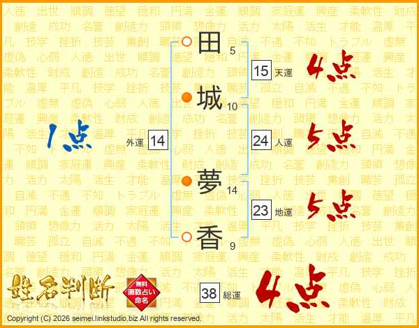 田城夢香さんの総運は38画の4点!