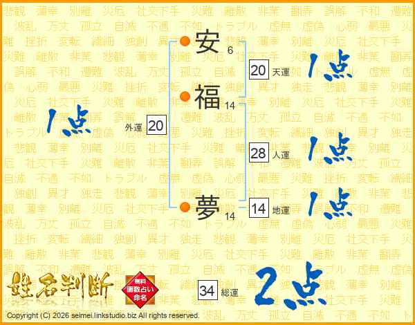 安福夢さんの天運は20画の1点!