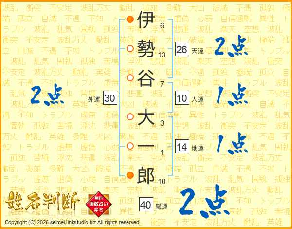 伊勢谷大一郎さんの総運は40画の2点!
