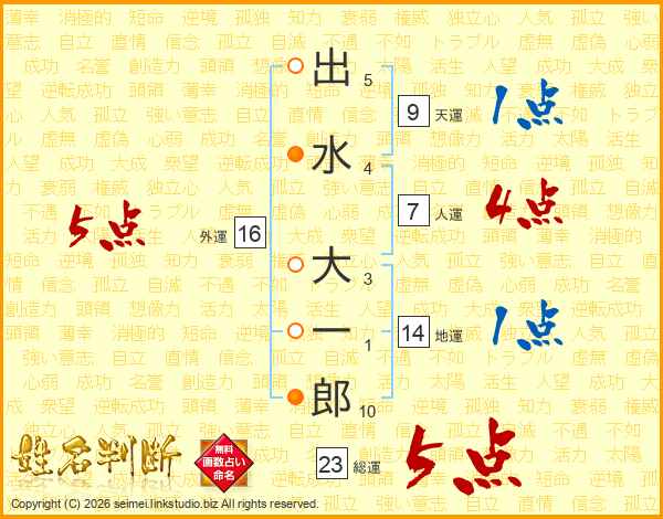 出水大一郎さんの総運は23画の5点!