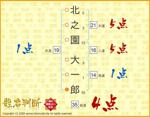 北之園大一郎さんの天運は21画の5点!