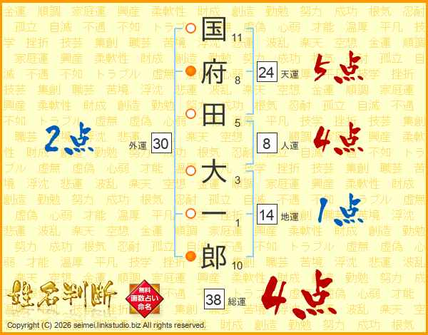 国府田大一郎さんの総運は38画の4点!