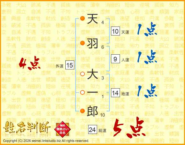 天羽大一郎さんの外運は15画の4点!