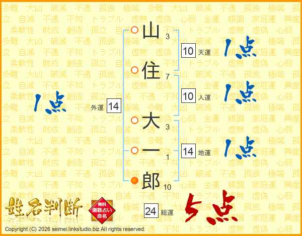 山住大一郎さんの総運は24画の5点!