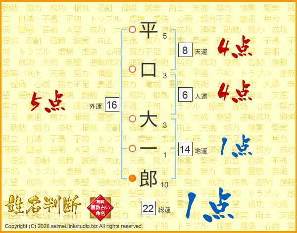 平(5画)口(3画) 大(3画)一(1画)郎(10画)