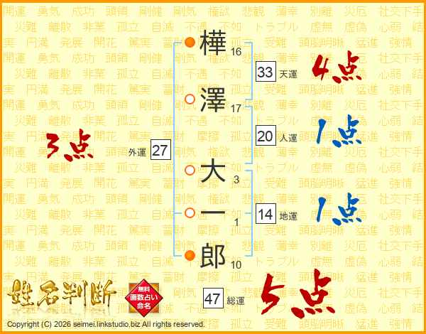 樺澤大一郎さんの総運は47画の5点!