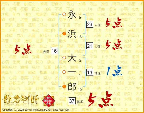 永浜大一郎さんの総運は37画の5点!