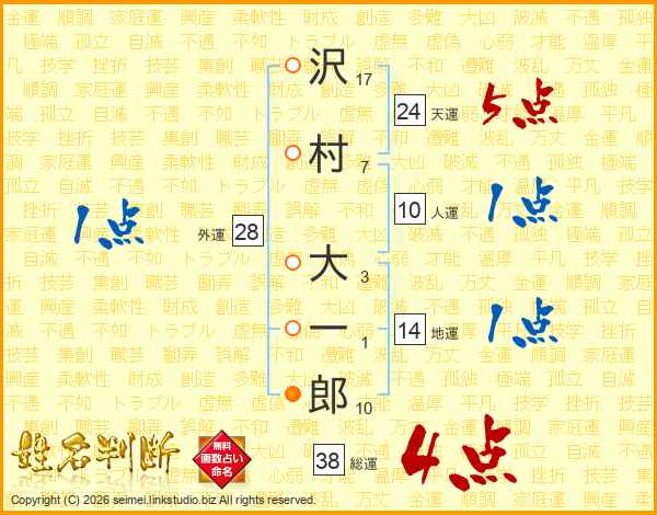 沢村大一郎さんの総運は38画の4点!