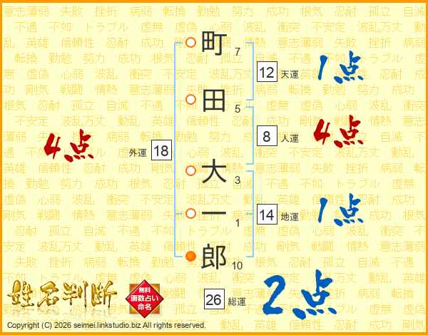 町(7画)田(5画) 大(3画)一(1画)郎(10画)