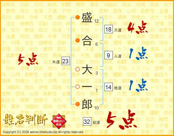 盛合大一郎さんの総運は32画の5点!
