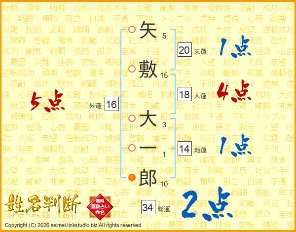 矢敷大一郎さんの総運は34画の2点!
