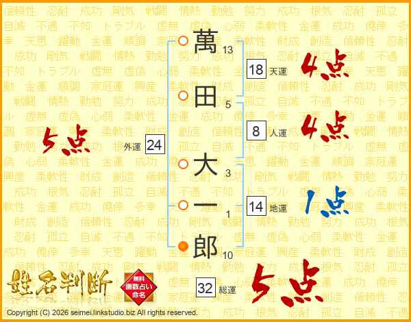 萬田大一郎さんの総運は32画の5点!