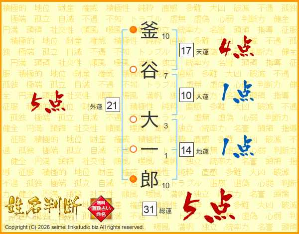釜谷大一郎さんの総運は31画の5点!
