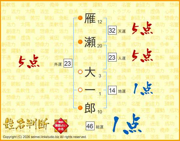 雁瀬大一郎さんの人運は23画の5点!