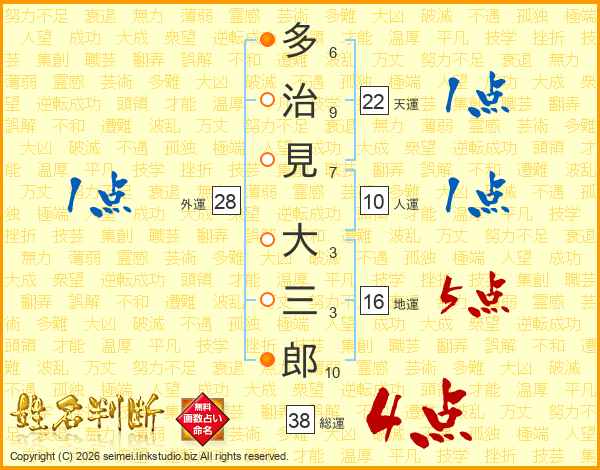 多治見大三郎さんの総運は38画の4点!
