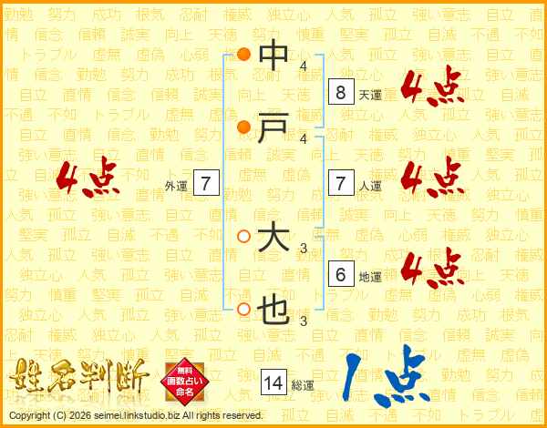 中戸大也さんの総運は14画の1点!