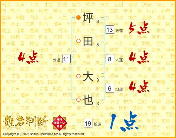 坪田大也さんの総運は19画の1点!