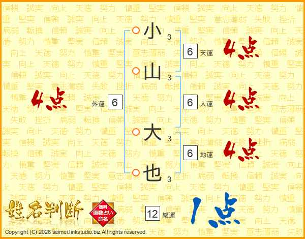小山大也さんの総運は12画の1点!