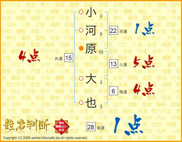 小河原大也さんの総運は28画の1点!
