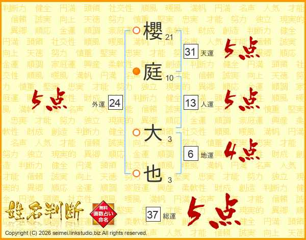 櫻庭大也さんの外運は24画の5点!