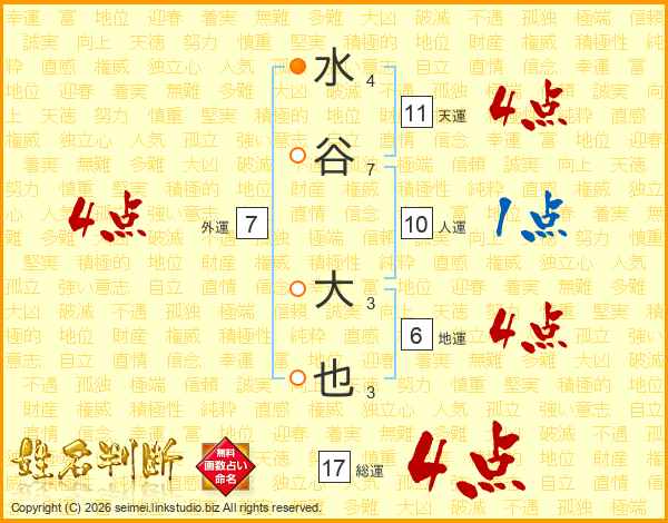 水谷大也さんの総運は17画の4点!