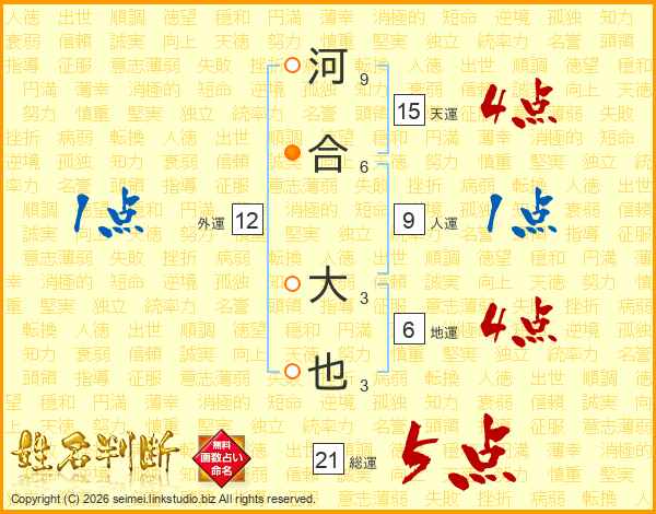 河合大也さんの総運は21画の5点!