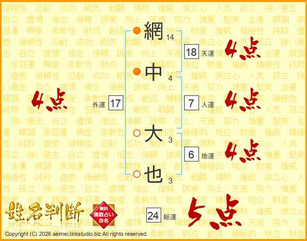 網中大也さんの総運は24画の5点!