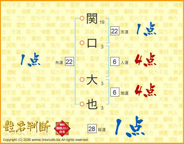 関口大也さんの総運は28画の1点!