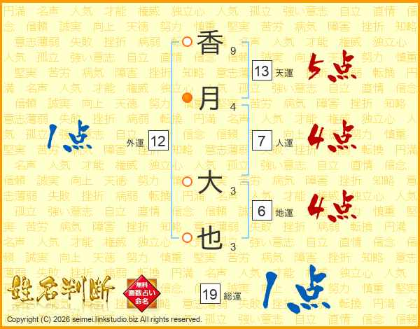 香月大也さんの総運は19画の1点!