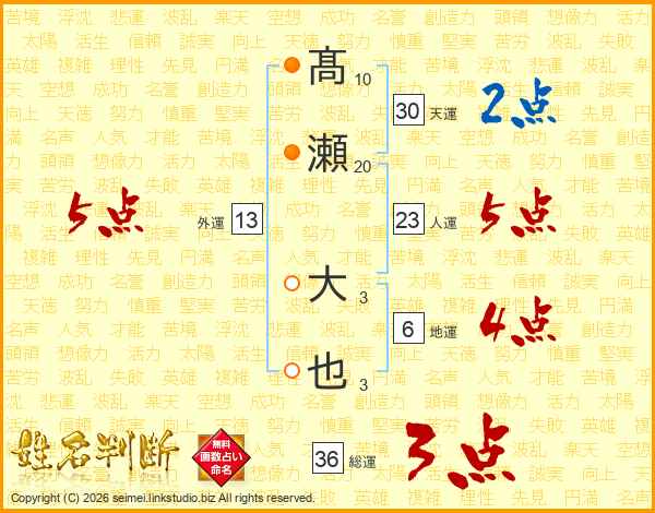 髙瀬大也さんの総運は36画の3点!