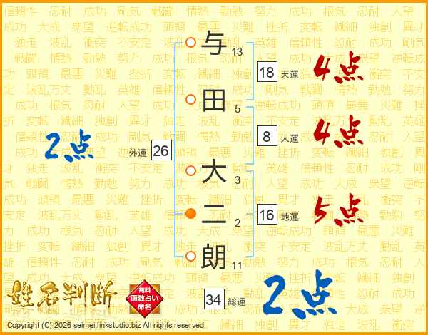 与田大二朗さんの天運は18画の4点!